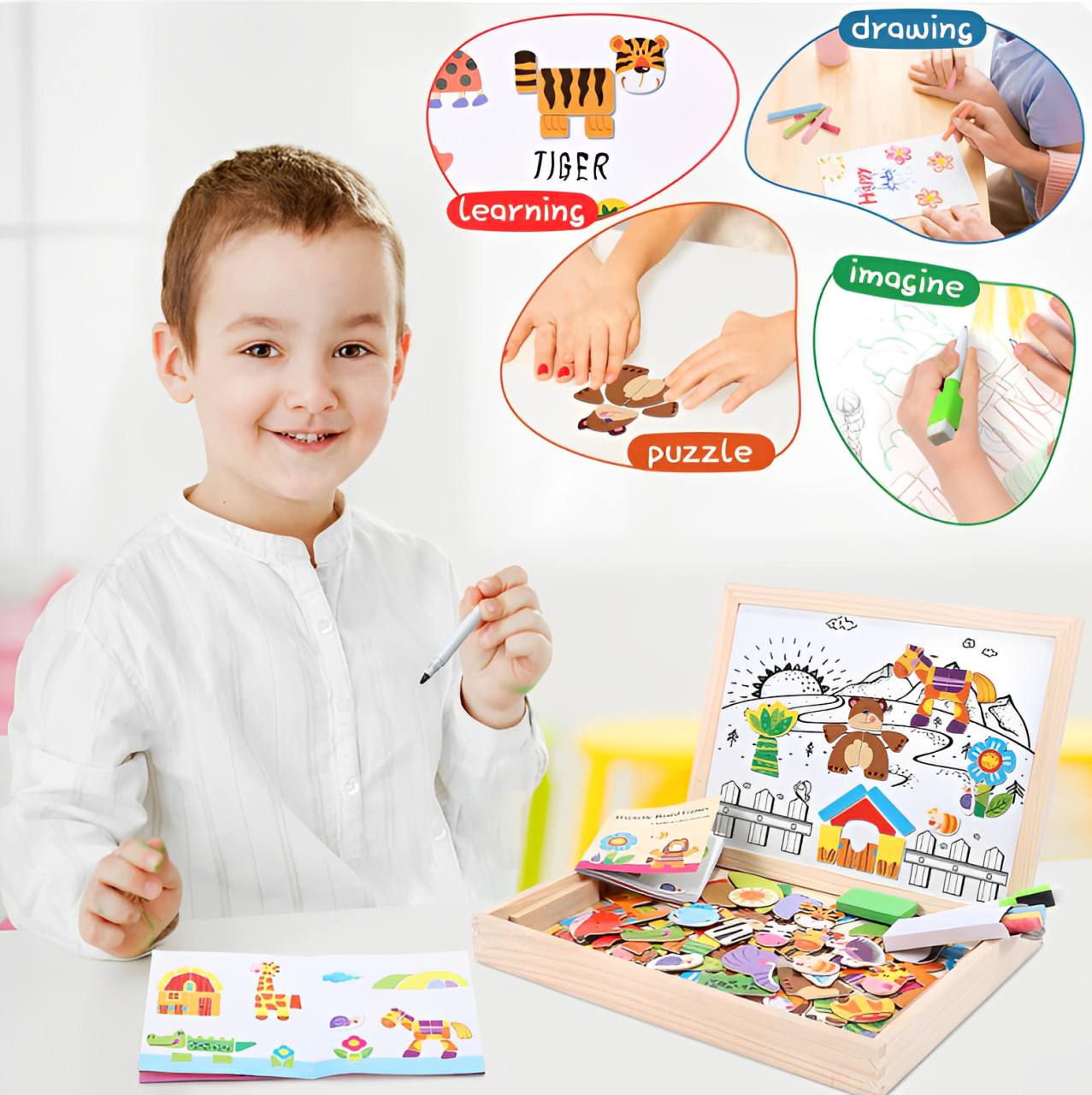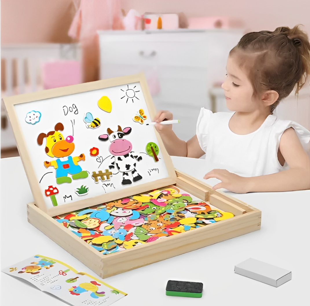 ✅ El Regalo Ideal: La Pizarra Didáctica 2 en 1 cultiva la creatividad y la imaginación de los niños, los rompecabezas se pueden usar como pegatinas y logotipos de dibujos animados para el refrigerador.